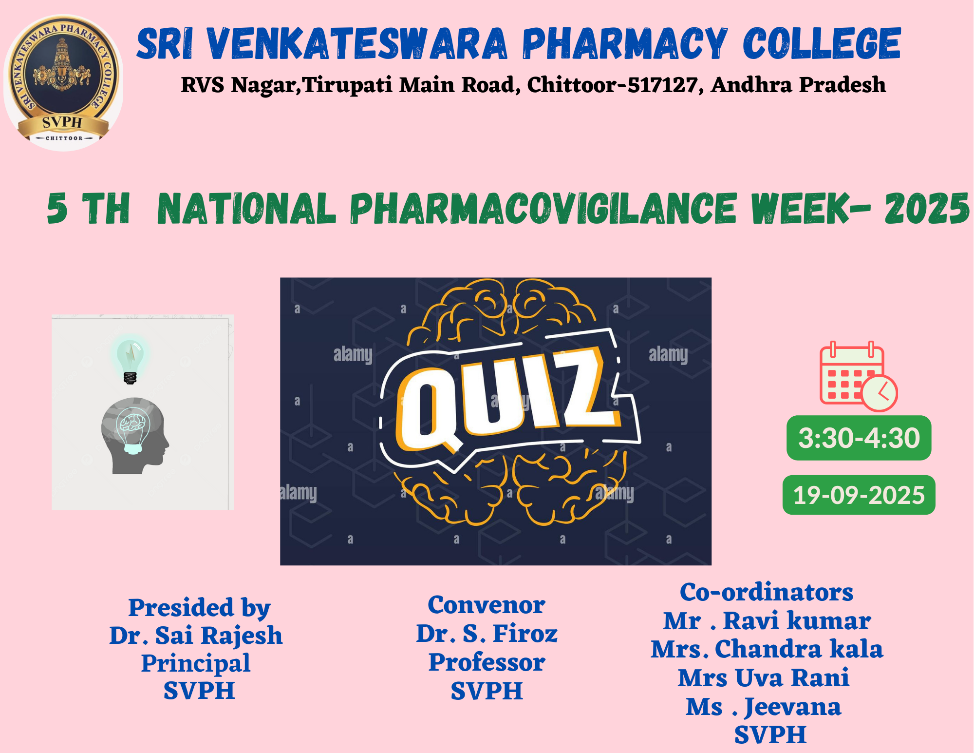 Sri Venkateswara Pharmacy College (SVPH) is a pioneer in quality education, a brain child of Bharata Jyothi Dr.R.Venkataswamy. The institute was established in the year 2022 and being well managed by the Srinivasa Educational Academy, RVS Nagar, Chittoor.